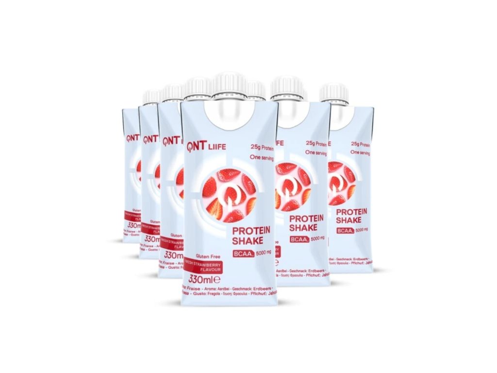 QNT Protein Shake s jahodovou příchutí je tekutý proteinový nápoj určený pro sportovce a aktivní jedince. Pomáhá doplnit bílkoviny po fyzické aktivitě nebo během dne, kdy není možnost připravit klasický proteinový nápoj.
